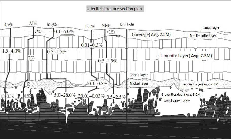 nickel mining is divide into copper-nickel mining and extraction of nickel from sulphide ore. Below the cover of the Ramu laterite nickel deposit in Papua New Guinea, there are yellow limonite deposits, residual layers, gravel-bearing residual rocks and pure peridotite bedrock; under the Philippines mining Nonoc laterite ore cover are limonite Layer, transition layer, residual ore layer and bedrock; Cameroon red earth cobalt-nickel ore is red soil layer, breccia, iron-aluminum and serpentine bedrock.