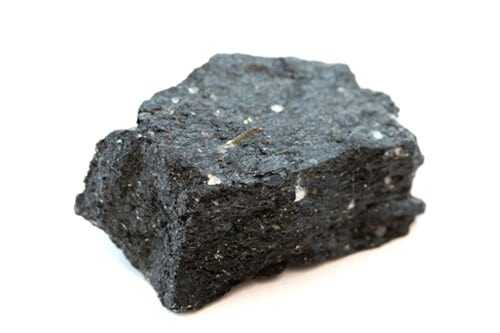 Amphibolite is a dark, heavy, metamorphic rock composed mostly of the mineral amphibole. Amphibolites have very little to no quartz. “Amphibole” refers not to a single mineral, but to a group of minerals. Most belong to the monoclinic crystal system, but some belong to the orthorhombic crystal system. They are silicate minerals containing SiO4 molecules. The SiO4 groups are connected to each other in double chains.